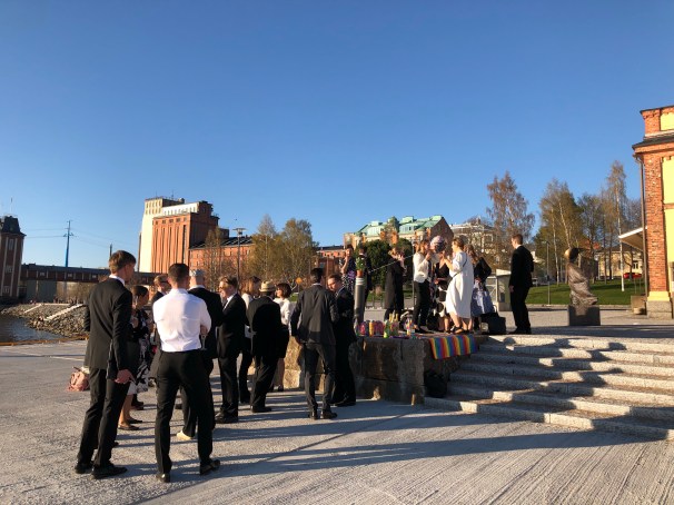 The Civil War was the undoing of Toivo Kuula, whose statue stands outside the Town Hall here. Kuula, who was born in Vaasa, died in a totally unnecessary way, in a drunken brawl in the aftermaths of the war. The argument that took place almost to the day 100 years ago, is said to have been over whose composition to a patriotic text was better, his or Sibelius’. As a result of the argument, Kuula unfortunately joined the ranks of brilliant composers who never made it beyond 35 years of age. We will sing one his most magical works, Siell’ on kauan jo kukkineet omenapuut, in a couple hours time. Talk about the right time and place.