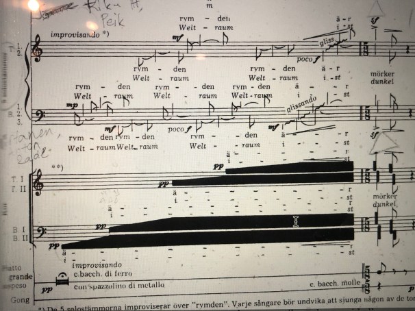 Perhaps the most imaginative elements of the work are the male choir sections. They are partially notated in a traditional speech-choir manner, but there are several effects that leave room for interpretation, as well as aleatoric passages. You need to remember that this was 1962. Placed in a program mostly consisting of traditional male choir music, Fåglarna would have not just stood out, it would have leapt at the audience. The piece is still extremely demanding and radical. That is no mean feat for a work almost 60 years old.